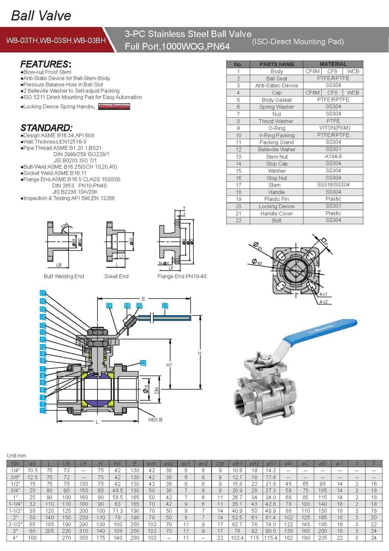 名稱:WB-03TH 3PC高平臺對焊球閥